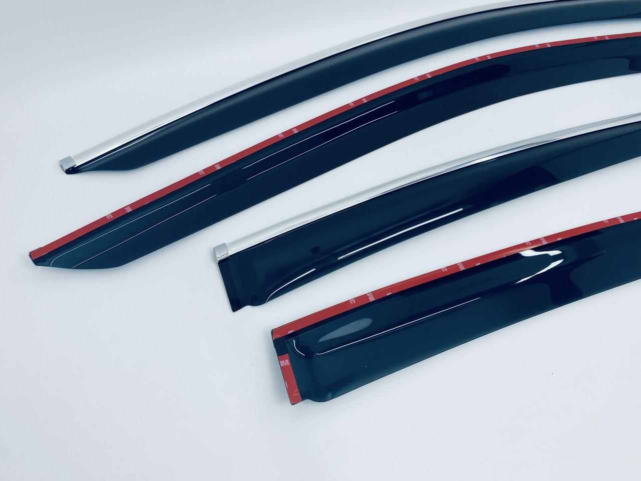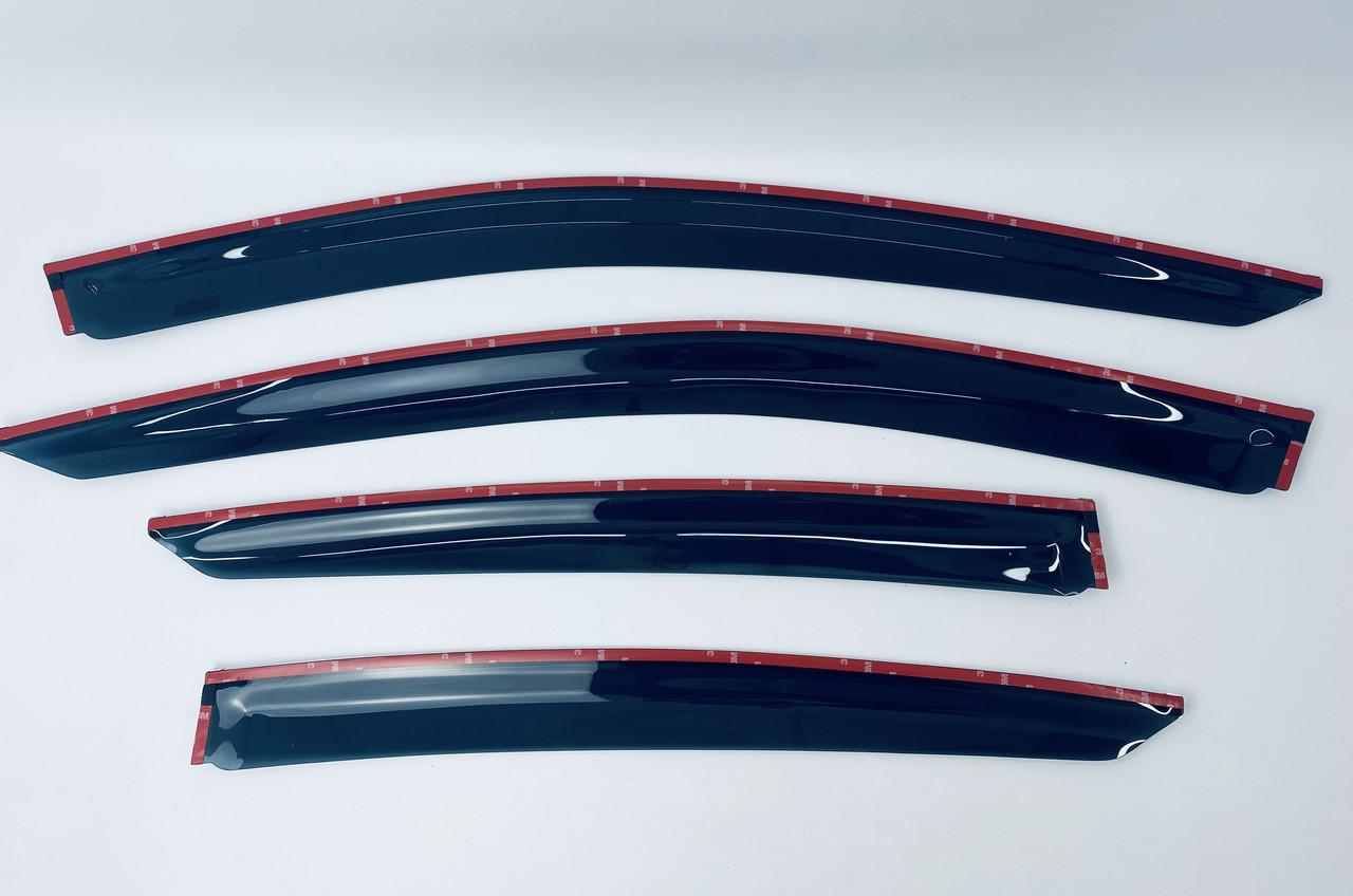 Дефлекторы легко клеятся к рамке двери на 3М скотч (в комплекте).