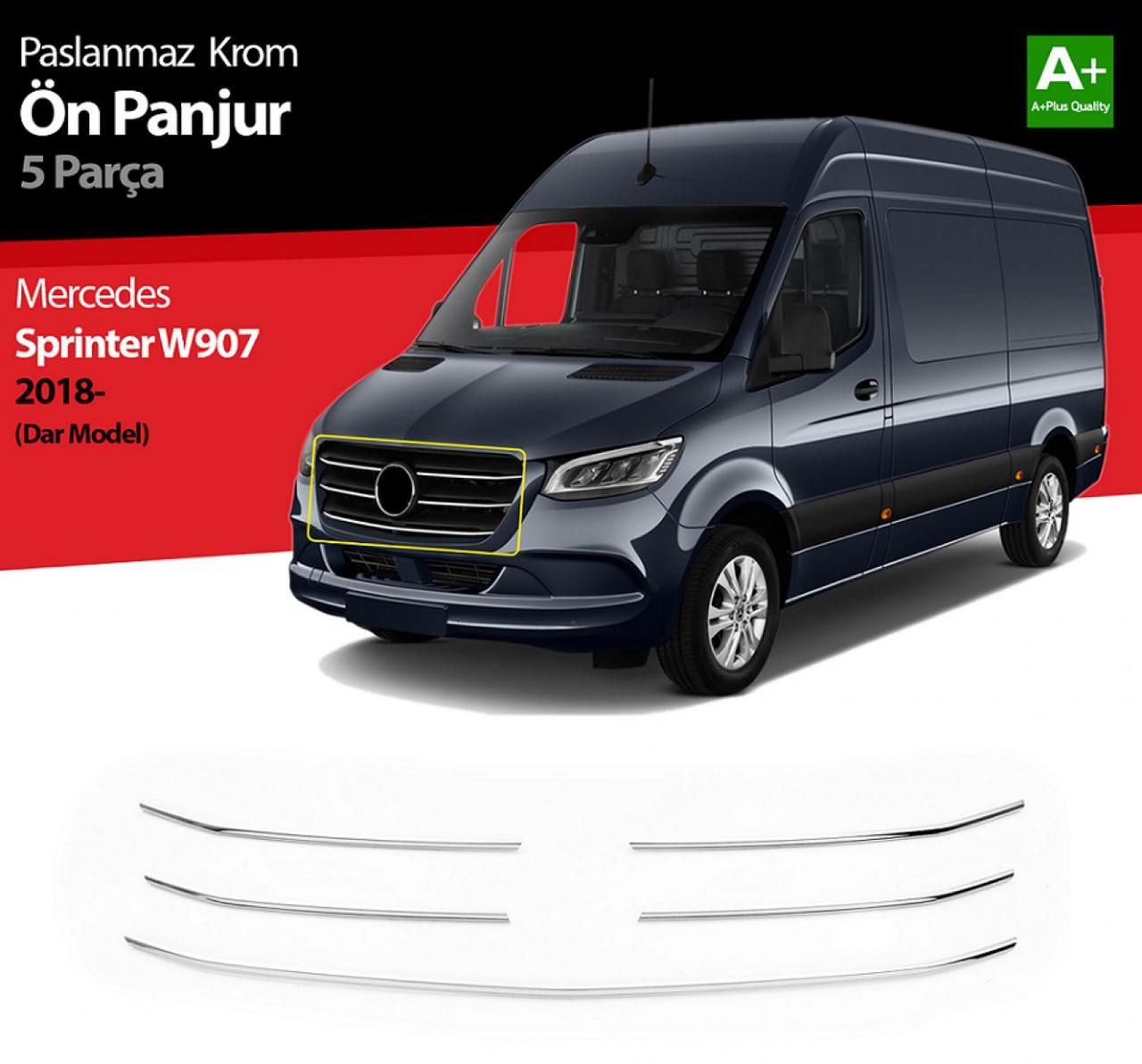 Накладка на переднюю решетку для Mercedes Sprinter 907 2019+ вузька 5шт (TAN24)