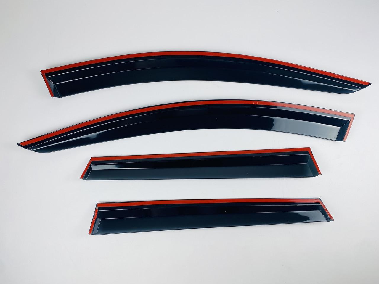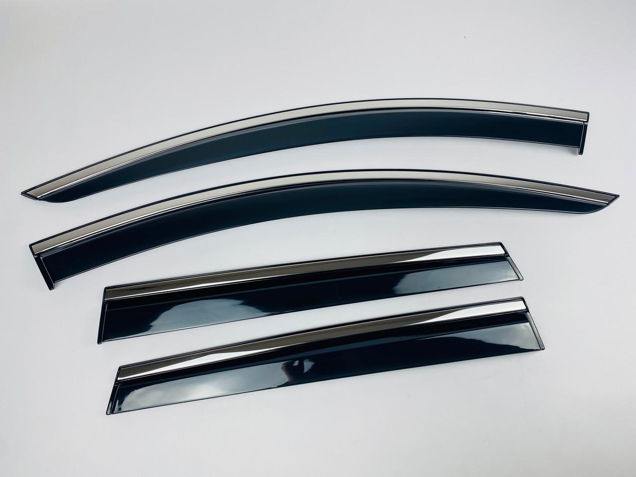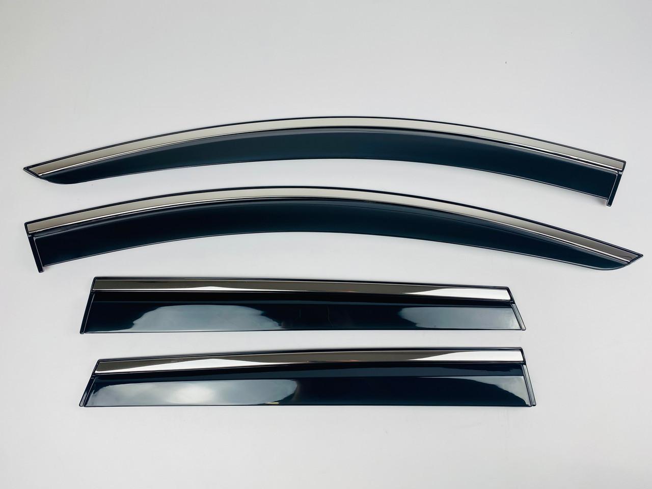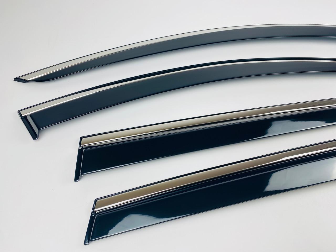 - Материалы премиум-класса: Ветровики выполнены из прочного акрилового стекла, устойчивого к ультрафиолетовому излучению и механическим повреждениям. Хромированная полоска из нержавеющей стали добавляет изделию изысканный внешний вид.
