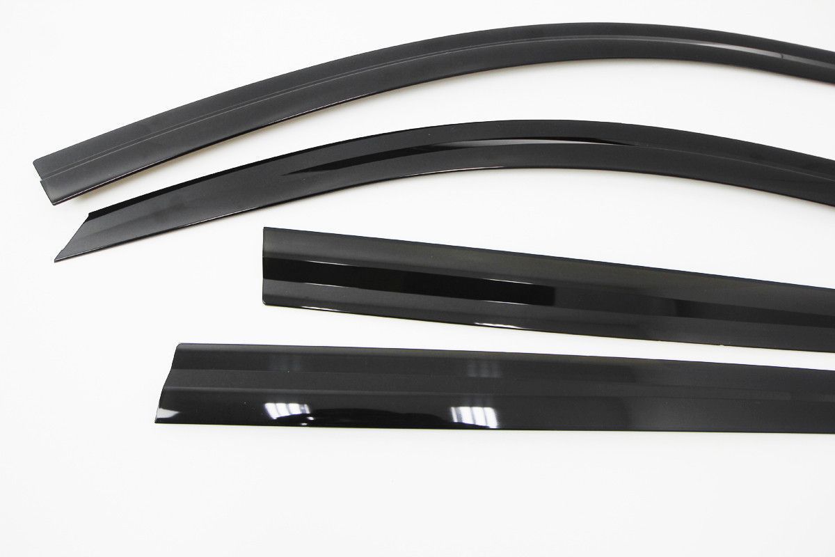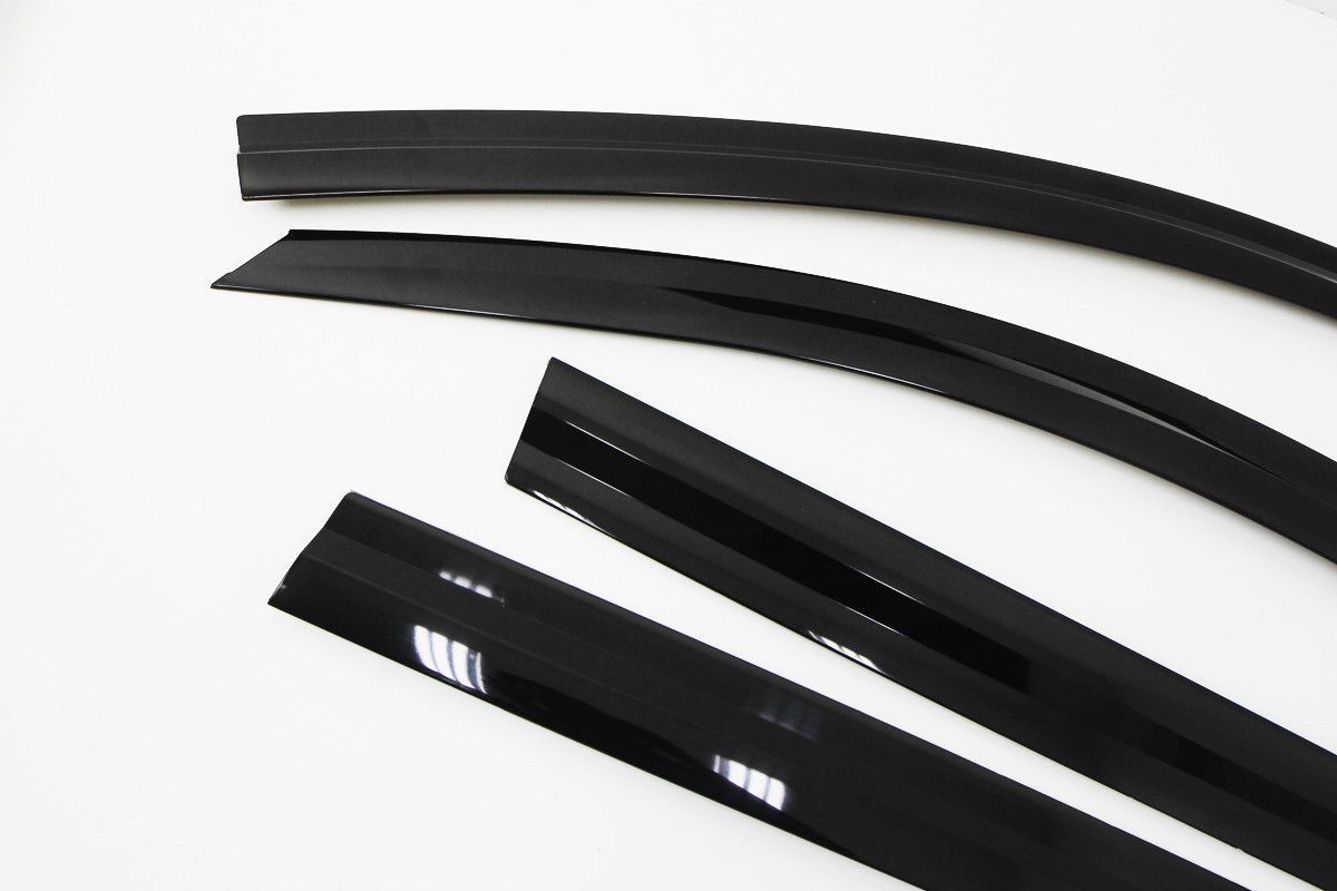 Ветровики монтируются на прочный двусторонний скотч (в комплекте и уже наклеен на ветровики). Подобное крепление значительно упрощает процесс монтажа. В результате, не требуется подгонка формы и установка механических закрепительных элементов.