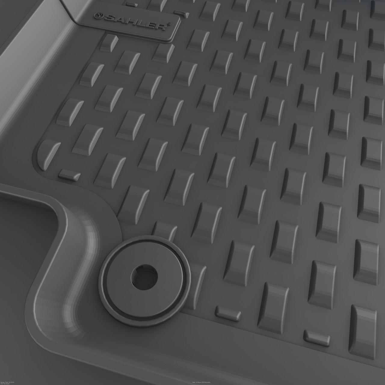 Килимки sahler елементарно фіксуються до підлоги салону за допомогою штатних кріплень. Килимки так само спроектовані за допомогою 3D сканування підлоги авто, що забезпечує точність форм і 100% покриття підлоги.