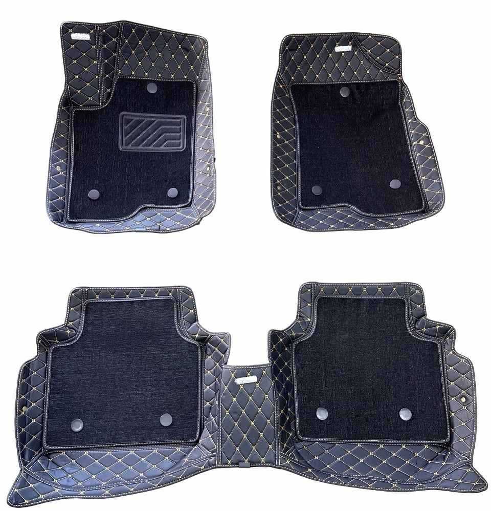 Їх контур прострочений високоякісної і міцною ниткою, що запобігає розшаровування країв. Крім того, на центральній частині килимка є спеціальне тиснення, яке крім естетичної функції виконує і практичну - рельєфна поверхня килимків утримує бруд і рідину, не допускаючи їх поширення по салону автомобіля.