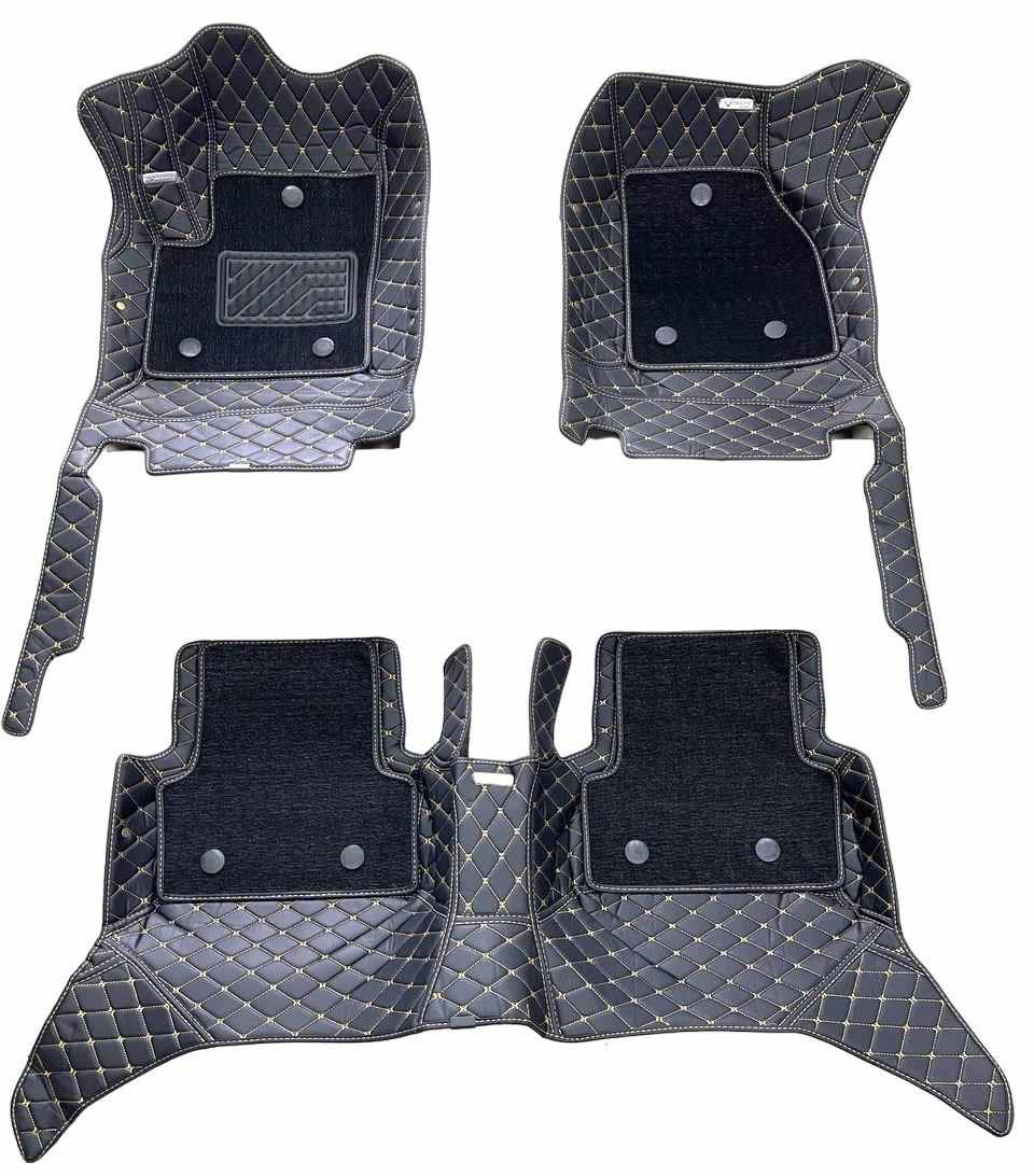 Їх контур прострочений високоякісної і міцною ниткою, що запобігає розшаровування країв. Крім того, на центральній частині килимка є спеціальне тиснення, яке крім естетичної функції виконує і практичну - рельєфна поверхня килимків утримує бруд і рідину, не допускаючи їх поширення по салону автомобіля.