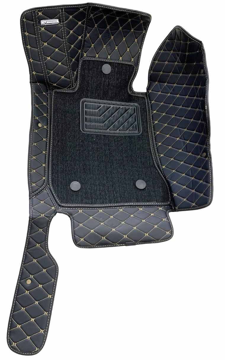 Їх контур прострочений високоякісної і міцною ниткою, що запобігає розшаровування країв. Крім того, на центральній частині килимка є спеціальне тиснення, яке крім естетичної функції виконує і практичну - рельєфна поверхня килимків утримує бруд і рідину, не допускаючи їх поширення по салону автомобіля.