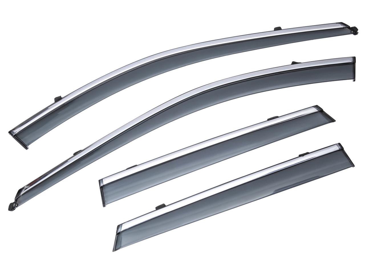 Отличные дефлекторы! Легко устанавливаются, защищают от дождя, стильный хром радует глаз. Рекомендую!
