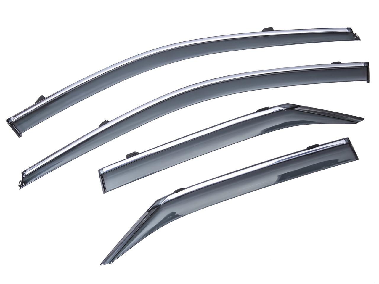 Вітровики - дефлектори на вікна автомобіля - це відмінна альтернатива системі клімат-контролю. Провітрювання салону, навіть на невеликій швидкості-галаслива і малоприємна процедура. Потоки повітря, пронизуючи автомобіль, створюють протяг і шум. Встановивши дефлектора створюється майже бездоганна циркуляція повітря. Призначені для запобігання попадання дощу, снігу, вітру в салон. Так само з боків захищають від сліпучих променів сонця.З вітровиками автомобіль менше пітніє в похмуру погоду, зменшують забруднення скла автомобіля і сприяють хорошій циркуляції повітря (без протягу).