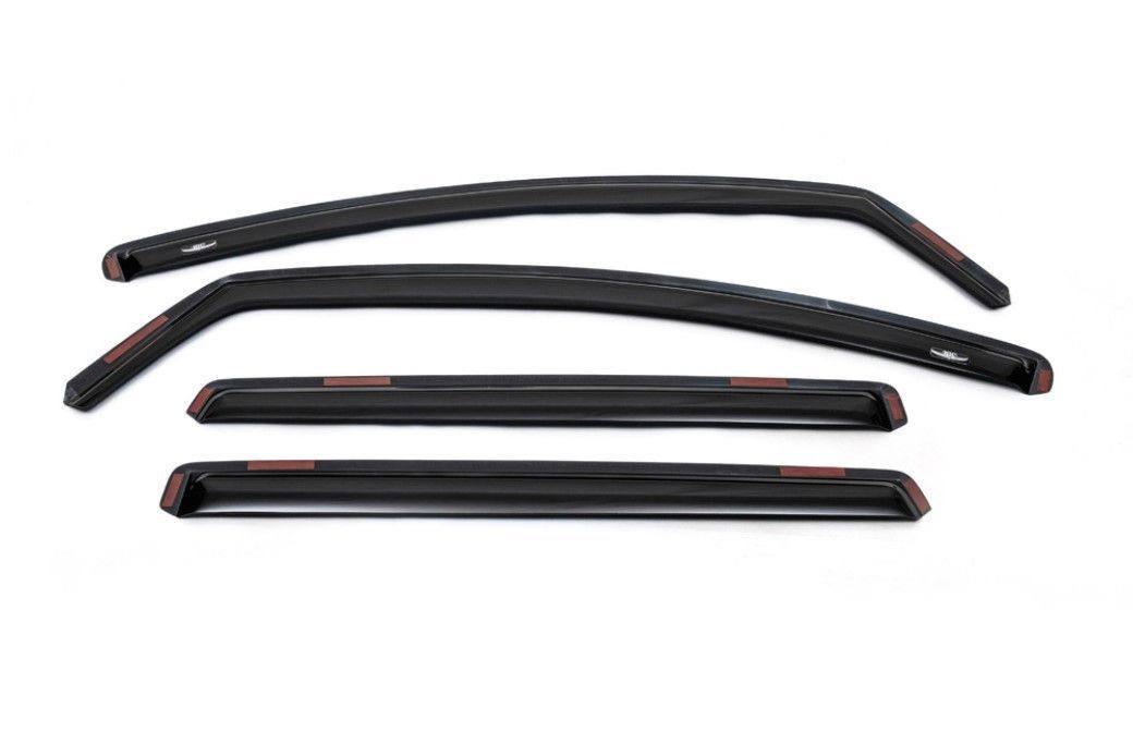 Він здатний прогинатися при незначному тиску, що знижує ризик утворення тріщин або сколів. Колір цього комплекту не контрастно чорний, а димчастий. Він більш стійкий до сонячного світла, тому протягом багатьох років не вигорає і не втрачає первинного відтінку. Інструкцією не встановлені строгі рамки температурного діапазону. Навіть в негативну температуру повітря (до -50) дефлектори не втрачають фіксаційних властивостей. Липка сторона скотча зберігає свої первинні властивості і в таких умовах.